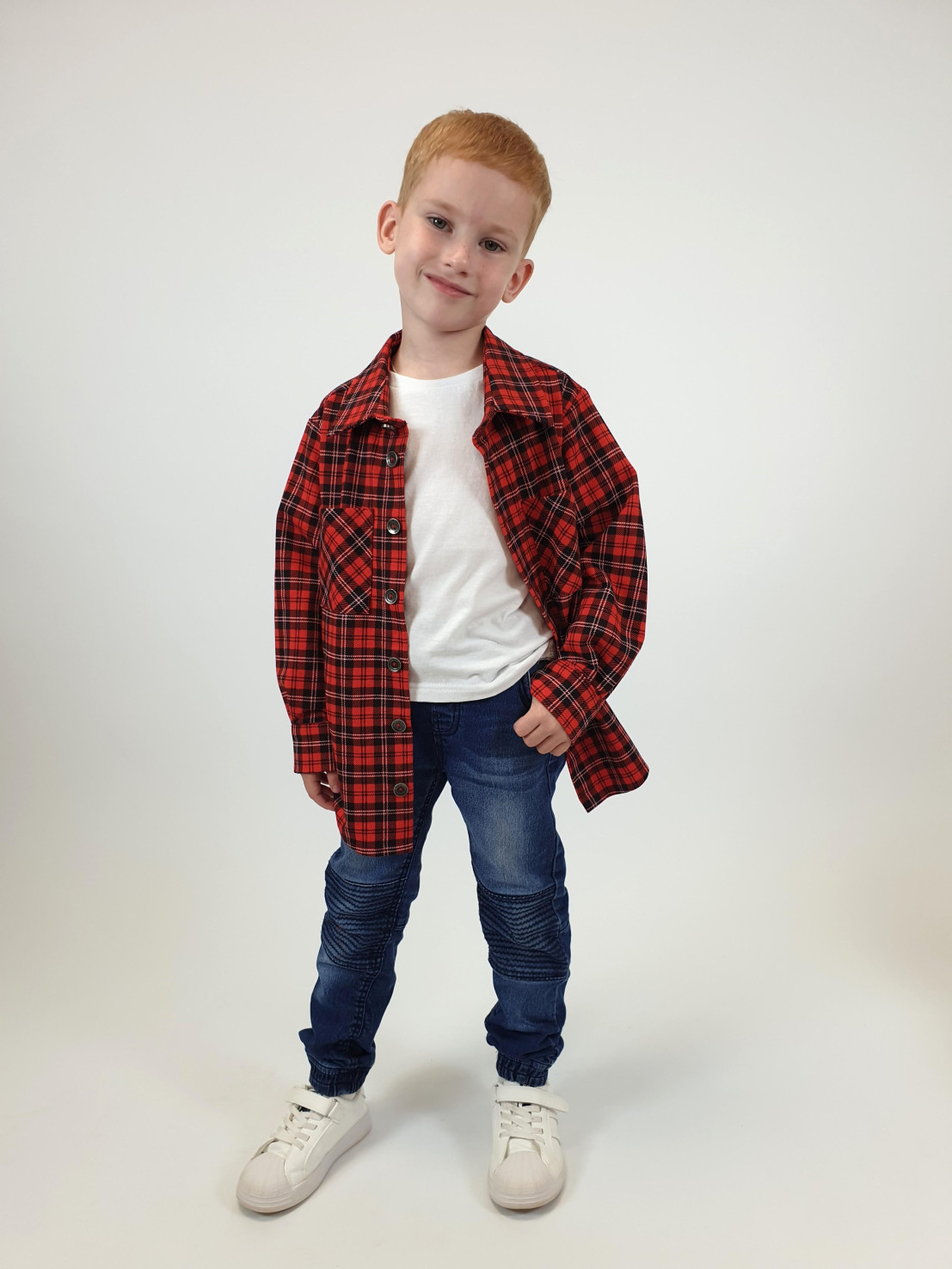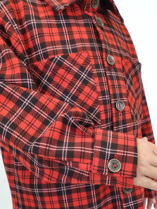 Футер двух- нитка:75% х/б,25% п/э. Сорочка-прямая,рукав на манжете.Сорочечный воротник со стойкой. Кокетка на спинке,переходящая на перед.Два накладных кармана,центральная застежка на пуговицы.Низ изделия фигурный,подшит.