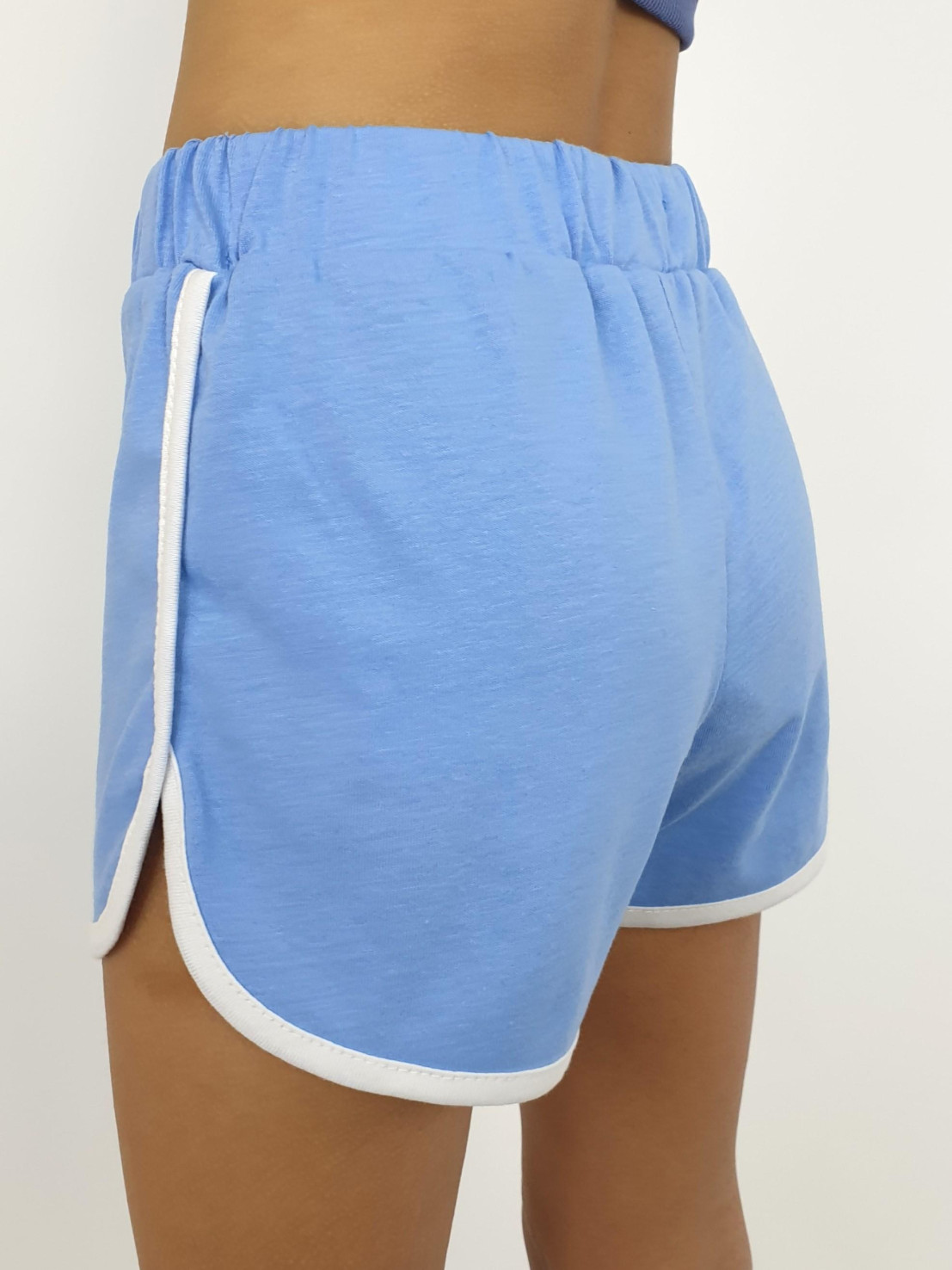 Кулирное полотно:100% х/б. Шорты-короткие с притачным поясом и резинкой. Окантован боковой шов и низ изделия.