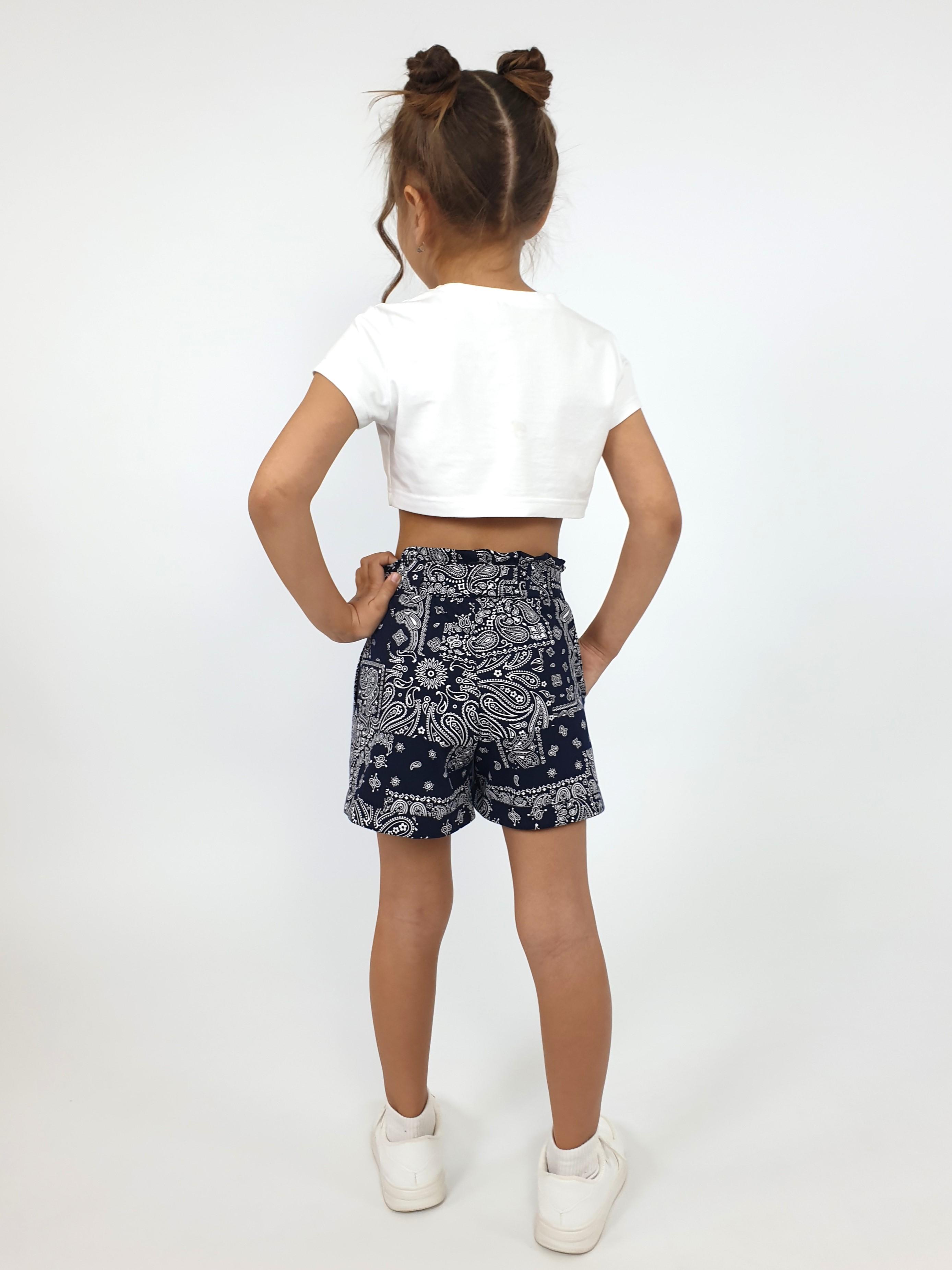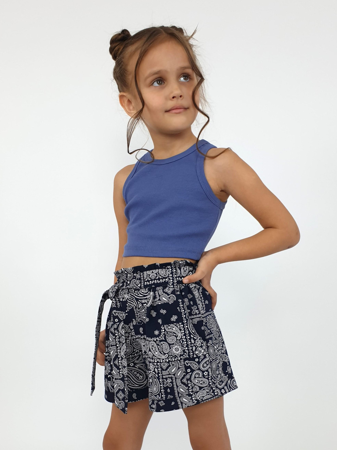 Кулирное полотно: 100% х/б. Шорты-прямые,короткие с притачными манжетами.Два боковых кармана.Пояс притачной с резинкой,завязывающийся пояс-фиксирован шлевками.