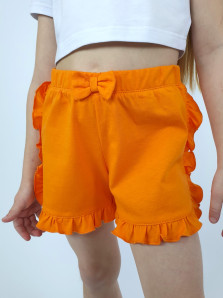 Шорты. Кулирное полотно, 100% х/б. Шорты-короткие с рюшей по боковым швам и низу. Притачной пояс с резинкой и отделочным бантом.