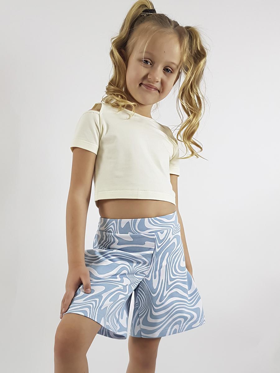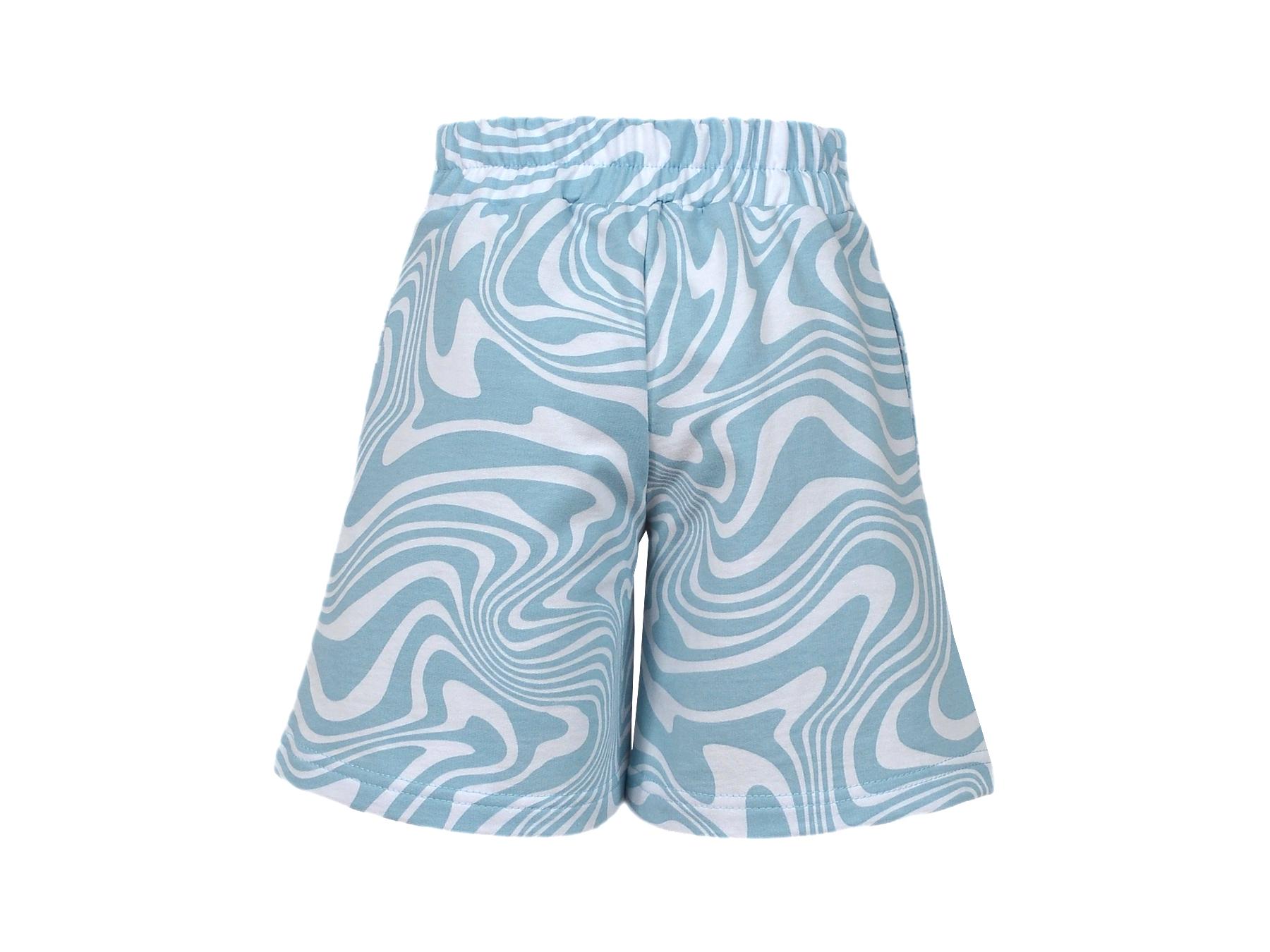 Футер двух-нитка:75% х/б,25% п/э. Шорты-длина до колена,расширены к низу,два боковых кармана.Притачной пояс,сзади с резинкой.