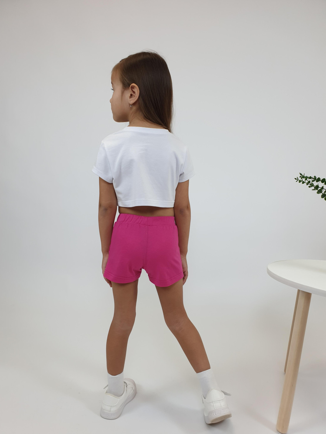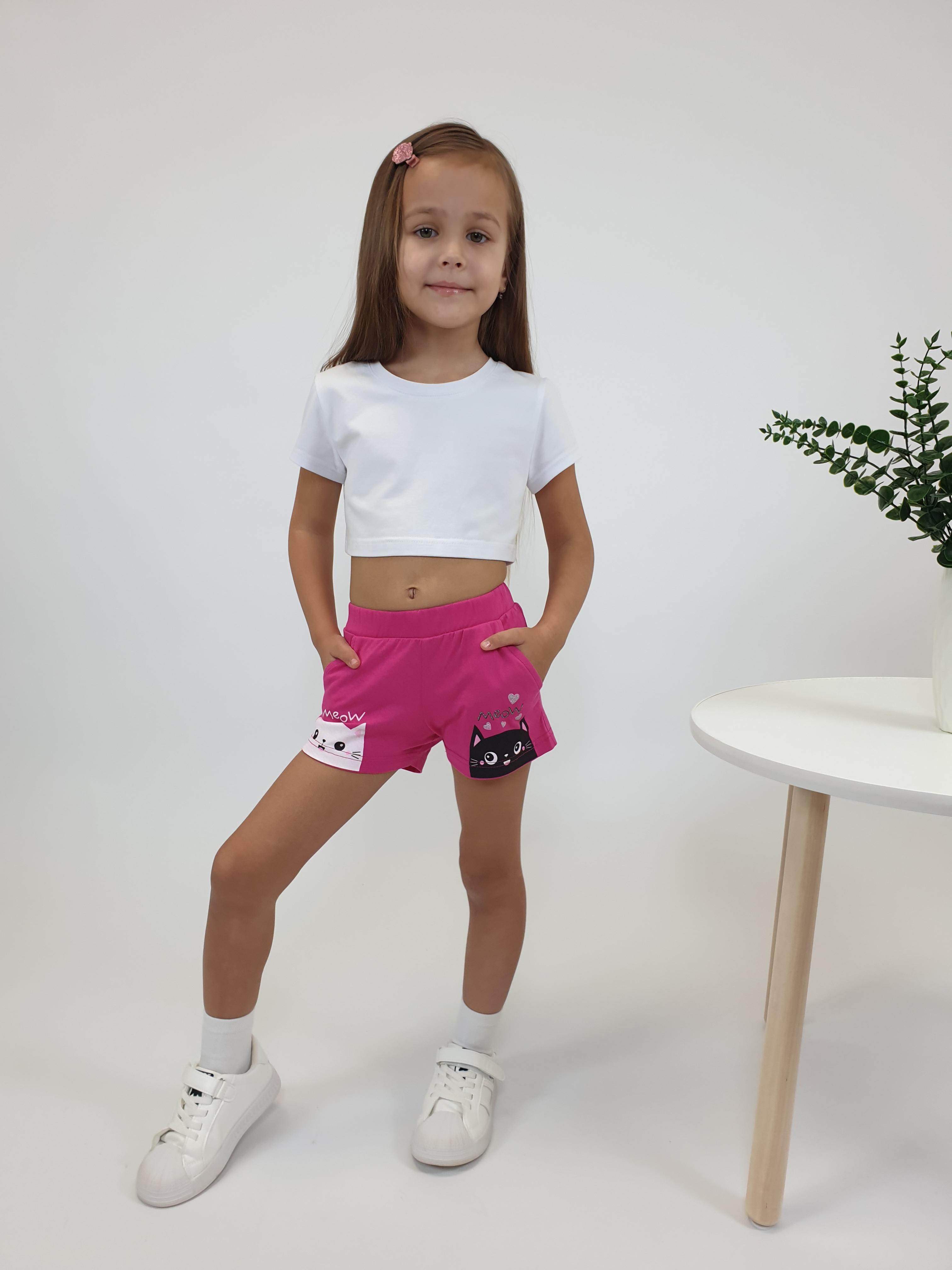 Кулирное полотно: 100% х/б. Шорты-прямые,короткие,короткие с притачным поясом и резинкой.Два боковых кармана.Печать на передних половинках.