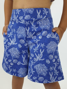 Футер двух-нитка:75% х/б,25% п/э. Шорты-длина до колена,расширены к низу,два боковых кармана.Притачной пояс,сзади с резинкой.