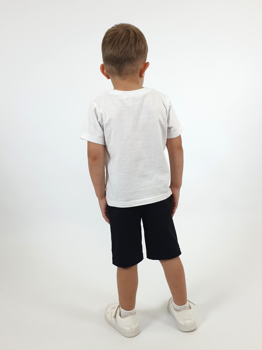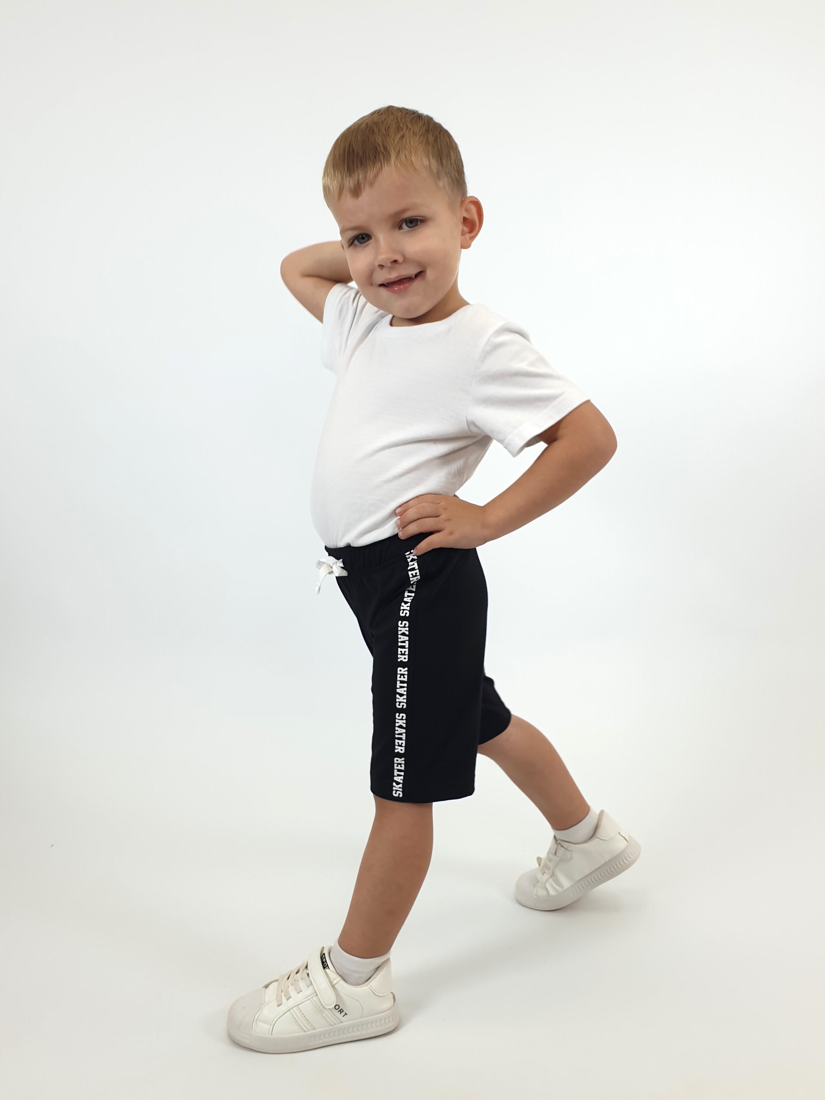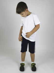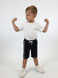 Кулирное полотно:100% х/б. Шорты-удлиненные с притачным поясом,с резинкой и шнуром.Печать - вдоль бокового шва на передних половинках.