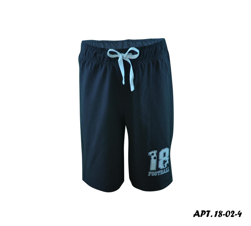 Шорты. Кулирное полотно, 100% х/б. Прямые, удлиненные с печатью по левой передней половинке внизу. Пояс притачной с резинкой и шнуром
