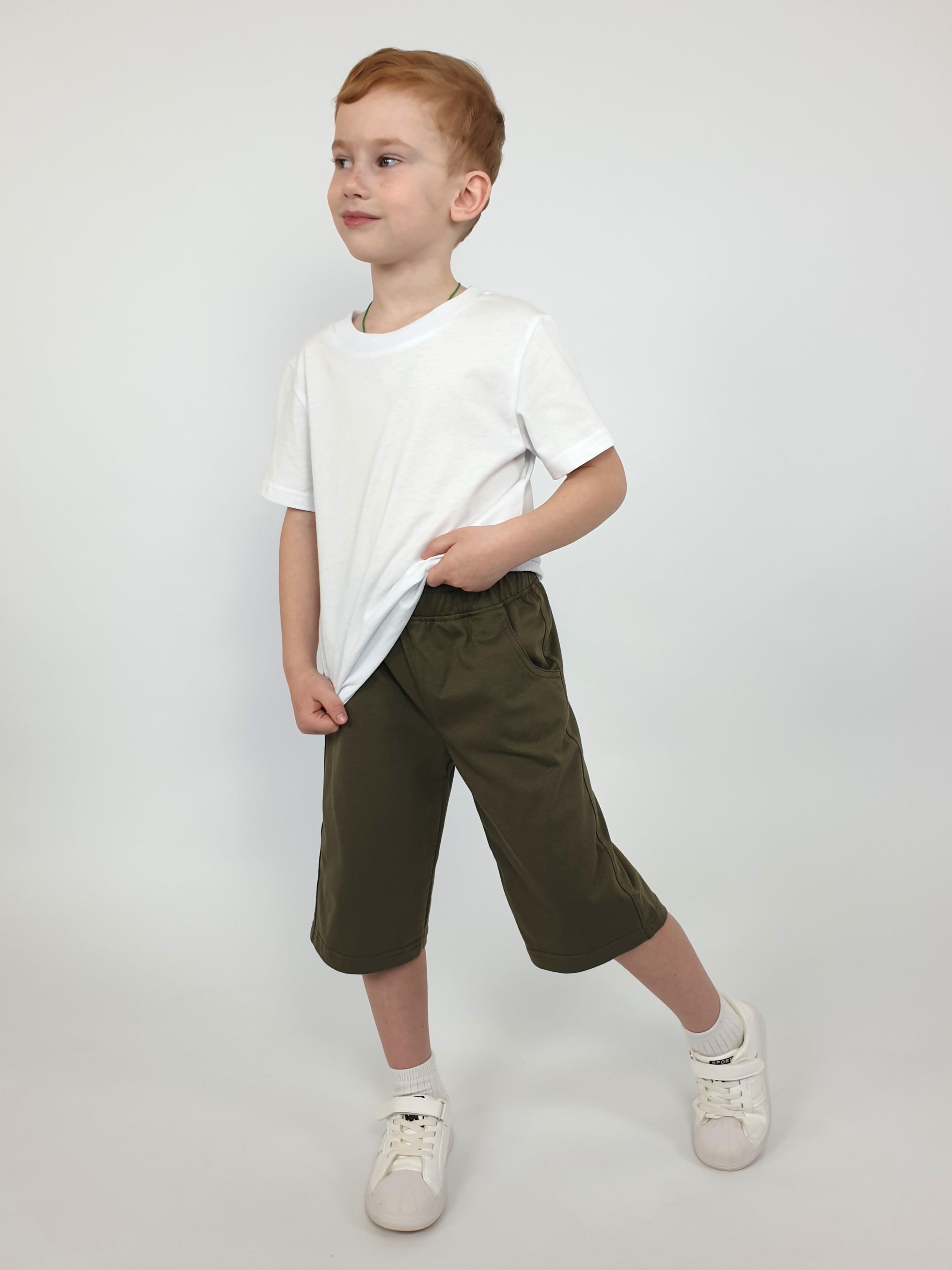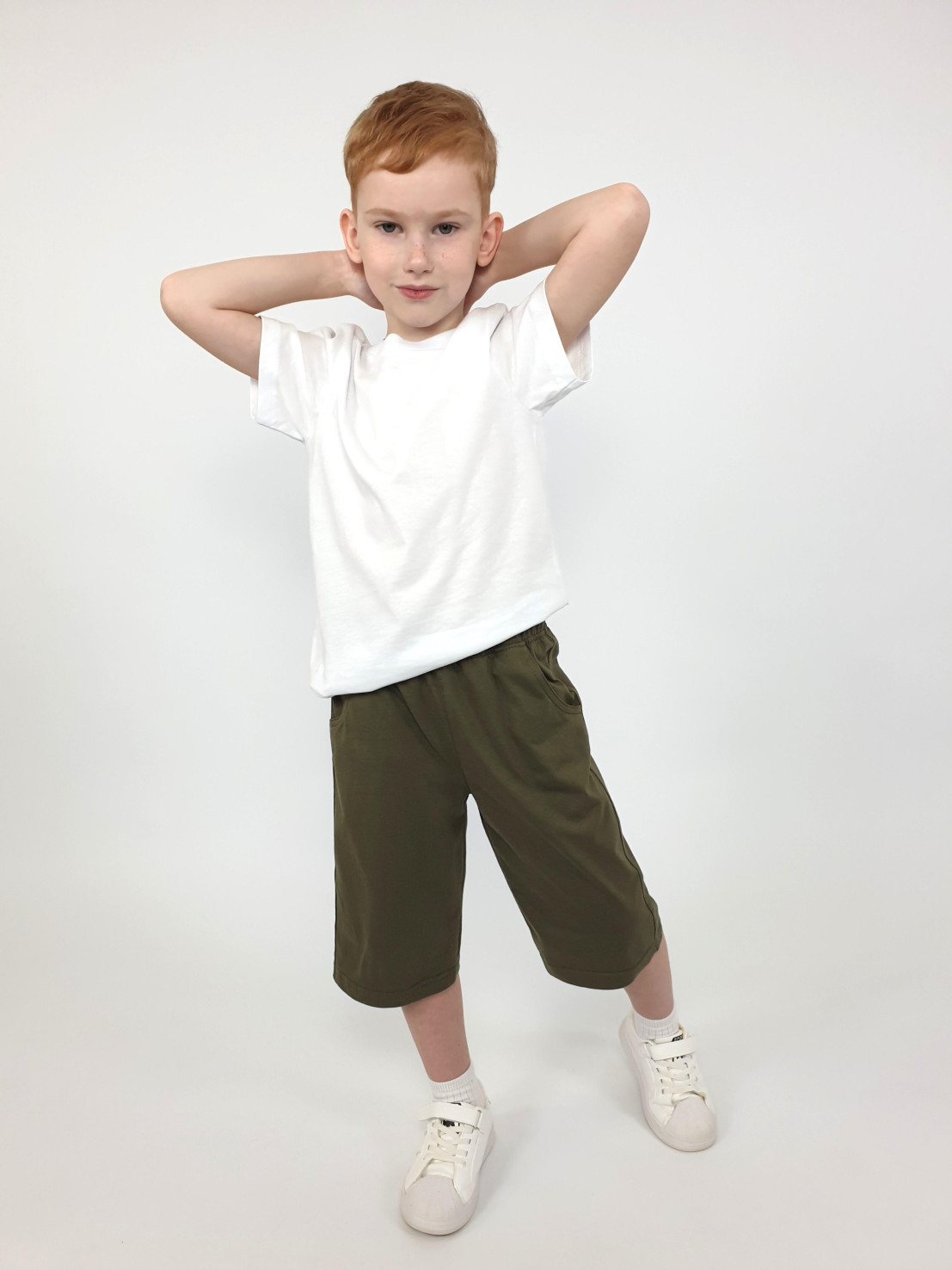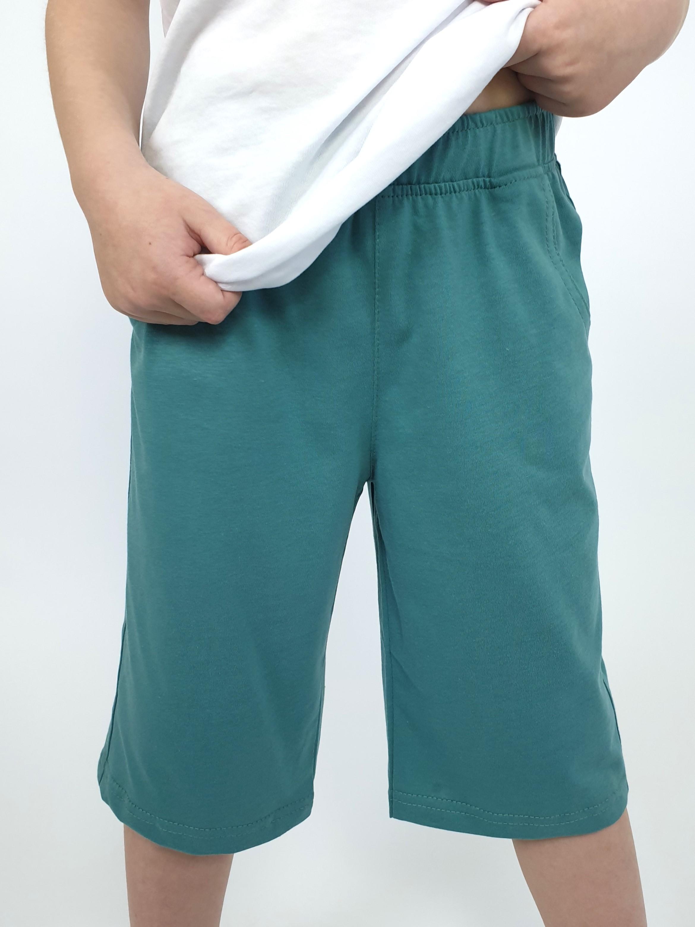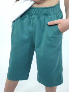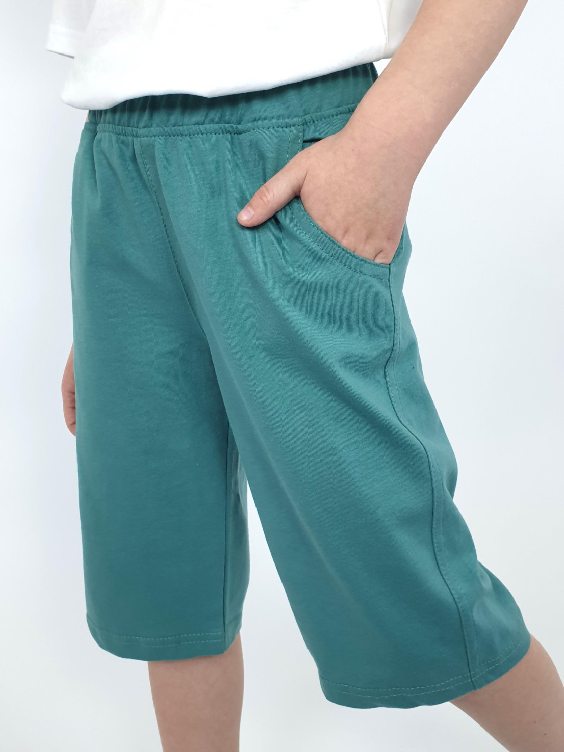 Кулирное полотно: 100% х/б. Шорты-удлиненные с притачным поясом,с резинкой.Два кармана на переде.