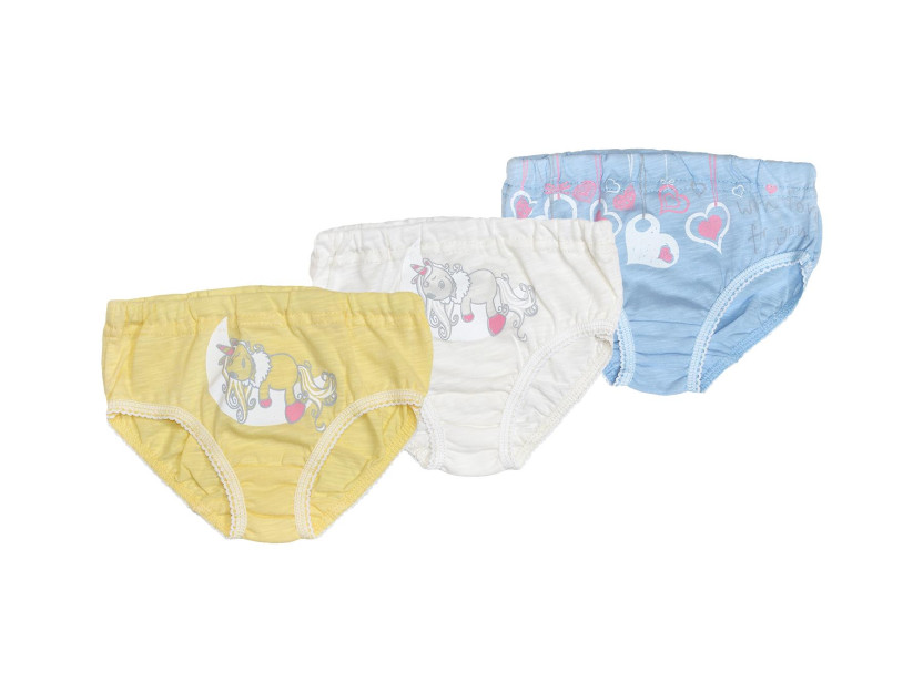Кулирное полотно(газе): 100% х/б. Трусы на резинке,окантованы ажурной резинкой,перед с печатью.